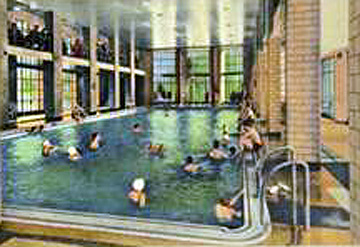 My favorite place in Excelsior Springs was the Hall of Waters. Every time we visited Excelsior I would go to the Hall of Waters, pay my quarter, and swim in the beautiful indoor swimming pool of mineral water for an hour or so. I usually became bored with the swimming part and would try the 10 foot high diving board. Once I had tried the high dives there was no return to just swimming. If seeing a diver perform a special dive, I would practice duplicating it until I had mastered the maneuver to my satisfaction. I would practice dives for hours until forced to leave by my parents or whoever brought me to Excelsior. As the years went by, I used the indoor pool countless times each year. When I was attending Excelsior Springs high school as a freshmen, I spent every opportunity at the Hall of Waters.